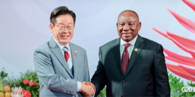 이재명 대통령이 아프리카 대륙 최초로 열린 'G20 남아공 정상회의'에 참석해 포용성장과 글로벌 AI 기본사회 구축, 핵심광물 공급망 협력 확대 등을 제시하고, 2028년 G20 의장국 수임을 공식화했다.