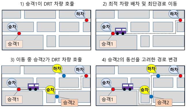 수요응답형교통은 이용자의 호출에 따라 차량을 배차해 최적 경로로 운행하는 방식으로, 이동 수요가 적고 분산된 지역의 교통서비스 수준을 높이기 위한 수단이다.