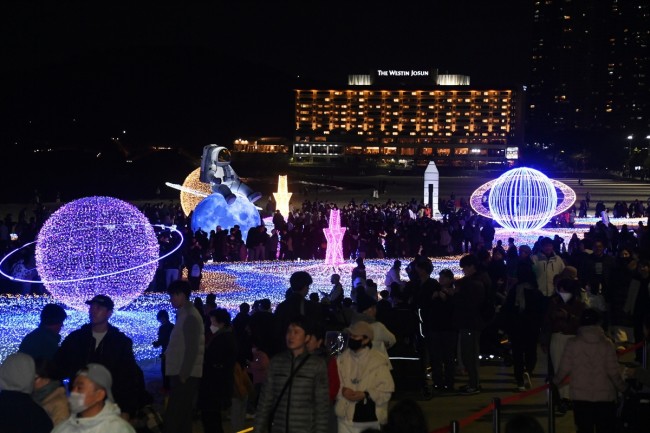 해운대해수욕장 백사장 180m 구간을 수놓은 수만 개의 은하수 조명 위로 행성, 별, 우주선 조형물이 어우러지고, 10m 크기의 지구 조형물에서는 미디어아트를 만날 수 있다.