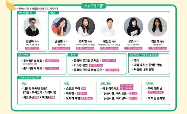이 밖에도 ▲잔디 위 독서라운지 ▲책과 연계한 체험 및 이벤트 ▲북토크 작가 강연 ▲영화 상영 등 이천의 지역 자원을 살린 다채로운 프로그램이 운영될 예정이다. 행사 관련 자세한 내용은 이천시 도서관과(031-644-4352)로 문의하면 된다.
