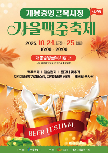 특히 오는 24일과 25일에는 개봉중앙 골목형상점가에서 ‘가을맥주축제’가 열릴 예정이다. 축제 기간에는 상점가를 찾는 고객을 대상으로 맥주부스와 식사공간이 운영되고, 달고나 만들기 등 체험형 이벤트와 거리문화 공연이 함께 진행된다. 주민과 상인이 어우러지는 현장 분위기를 통해 상권 이용률 제고와 지역 경제 활성화를 동시에 기대할 수 있다.