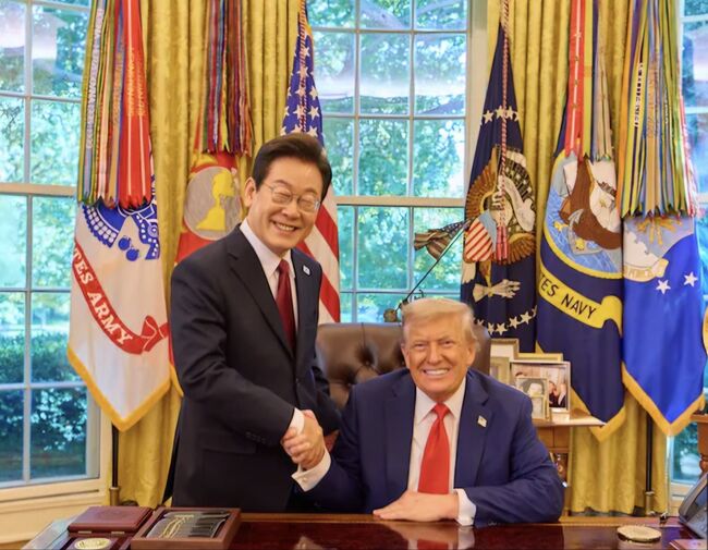 이재명 대통령이 지난 8월 백악관에서 도널드 트럼프 미국 대통령과 악수하고 있다.(대통령실)한· 미 관세 및 안보 협상의 결과를 담은 조인트 팩트 시트(joint fact sheet, 합동설명자료)가 14일 발표됐다. 미국이 한국의 원자력 추진 잠수함 건조를 승인하고, 한국의 우라늄 농축과 사용후 핵연료 재처리 권한 확대에 대해 미국 정부의 지지를 담고 있다.