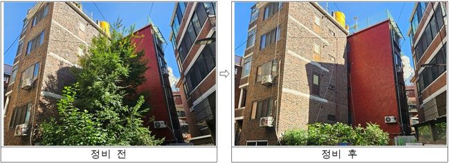 구로구 주택가 내 위험수목 정비 전후 모습.
