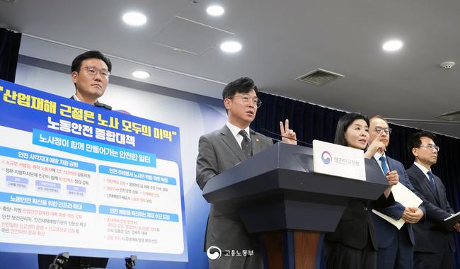 김영훈 고용노동부 장관이 9월 15일 사고 없는 일터, 안전 대한민국을 위한 `노동안전 종합대책`을 발표하고