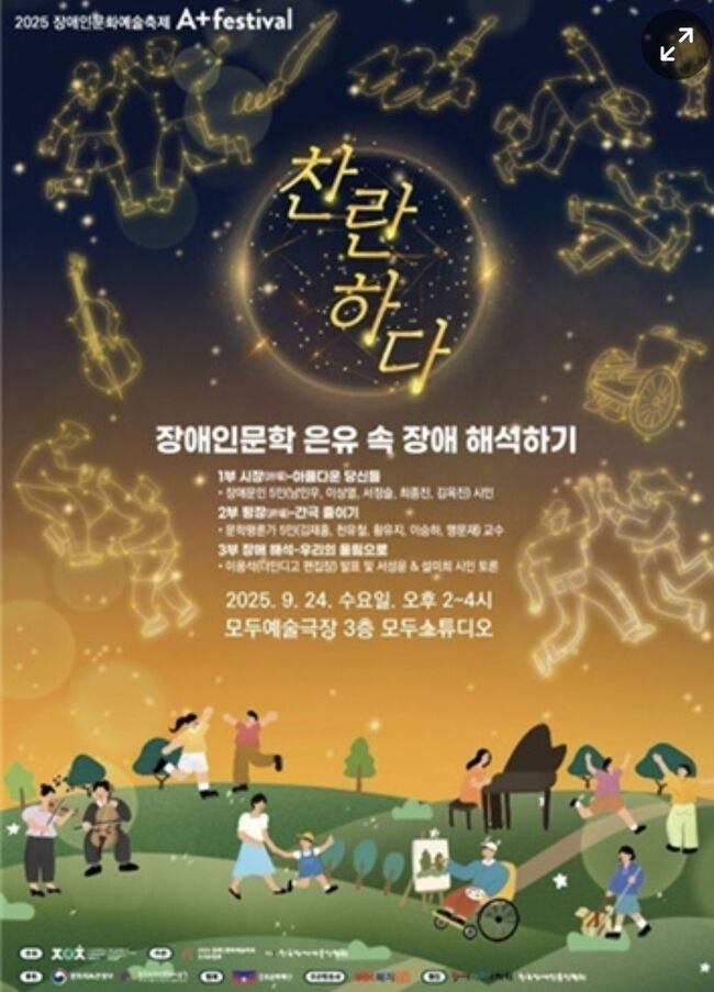 2025 A+페스티벌 프로그램 ‘장애인문학 은유 속 장애 해석하기’ 포스터한국장애예술인협회(회장 석창우)에서 2025 A+페스티벌 프로그램의 하나로 진행한 ‘장애인문학 은유 속 장애 해석하기’가 대성공을 거두었다.