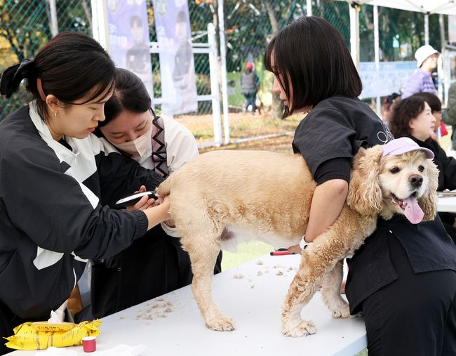 `2024 노원에서 반려동물과 함께 즐겨요` 애견 미용 체험 부스 모습.